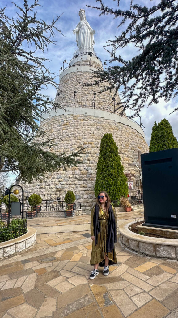 - Harissa: Home to the Lady of Lebanon, Harissa was my favorite stop outside of Beirut. Also located on the sea, the views of the coast from the Lady of Lebanon are pretty spectacular. A common day trip is to book Jeita Grotto, Harissa, and Byblos all in one (which is what I did, and would highly recommend).