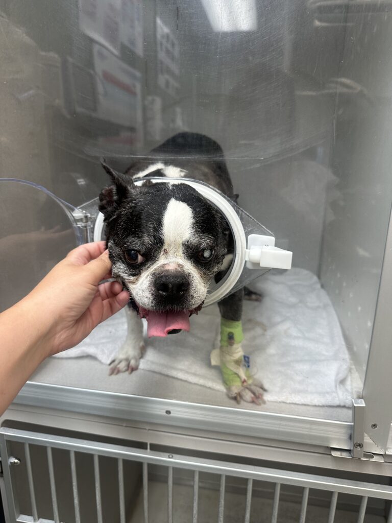 The vet asked what we wanted to do. She said it would be perfectly reasonable to euthanize him, but the dog CLEARLY does not want to die. He is still grabbing a ball to play, even with a nearly purple tongue. He is still licking my face (even with his disgustingly stinky rotten breath, which I don’t care for even a second because he’s a pure angel baby). He is still eating his treats. But at the same time, every night, we inch closer and closer to witnessing him choke to death. The vet said, if we decided to not leave him at the ER, we would need a plan to euthanize him ASAP. If we wanted to give him a night in the oxygen tank, they could try to pinpoint the exact issue, and they could find a treatment plan moving forward, with the caveat that regardless, he doesn’t have long since his heart is failing and that simply can’t be fixed.