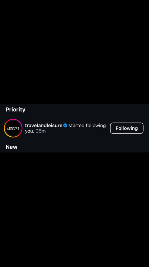 As for the thread with the woman who owned a wine bar, I did meet her. And she has my same birthday. I went to her bar, set up shop, and began writing. That’s when Travel + Leisure started following me on Instagram. I was wildly confused; I’ve never written for them and had no connection with them. They then DMed me to tell me my account had been recommended to them to start doing social media work for them. Long story short, we made it official, and I now make social media content for T + L.