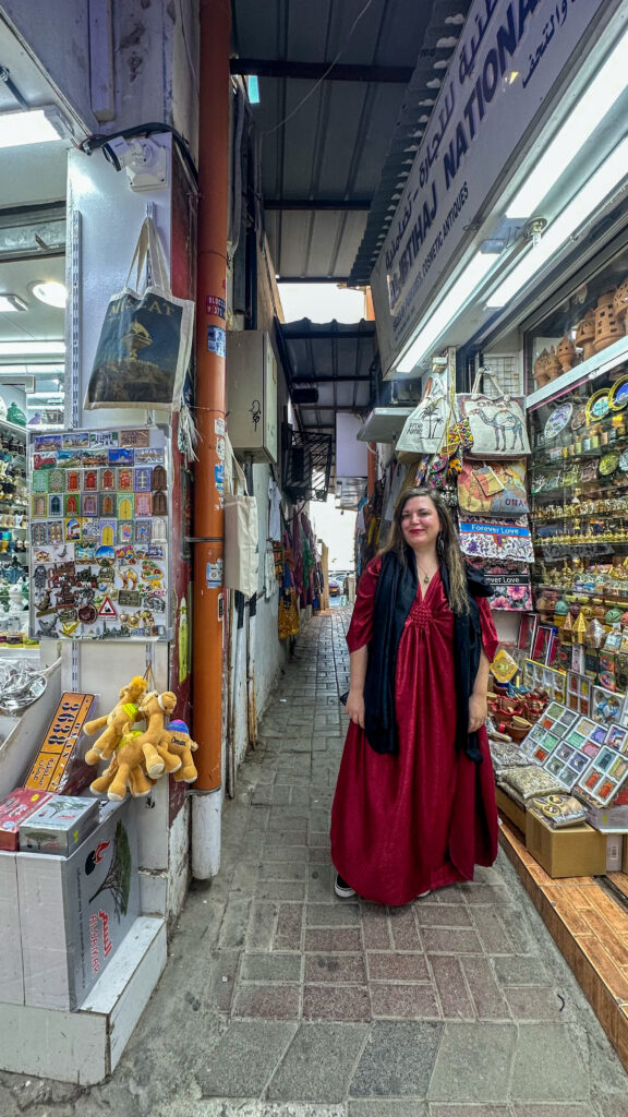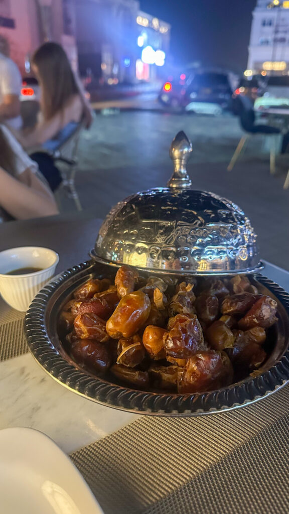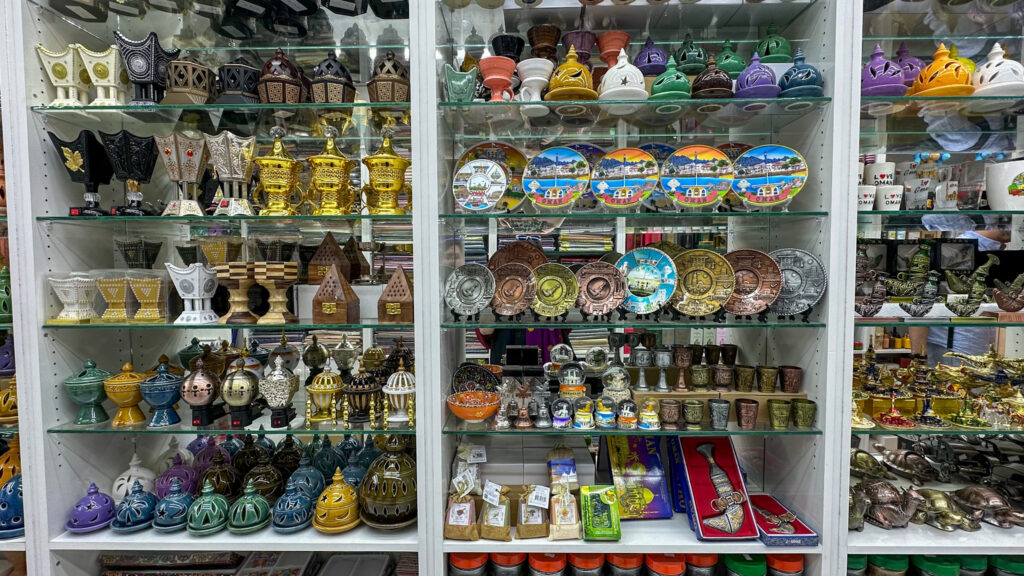 Well, let me backtrack — you should head to Mutrah Souq regardless. But for me, this wound up being one of my favorite stops of my day in Muscat. Mutrah Souq is smaller than other Middle Eastern souqs I’ve seen, and the vendors are not as pushy as they are at souqs elsewhere (though, they do still try to grab a sale where they can). Here, you can buy thigns like souvenirs (some of the magnets are incredible!), scarves, dresses, bags, perfumes, spices, and vacuum-packed food like dates and nuts. Haggling is completely acceptable, and even expected. You should try to have some cash handy, but if you don’t, some of the vendors take card, and there are ATMs available onsite.